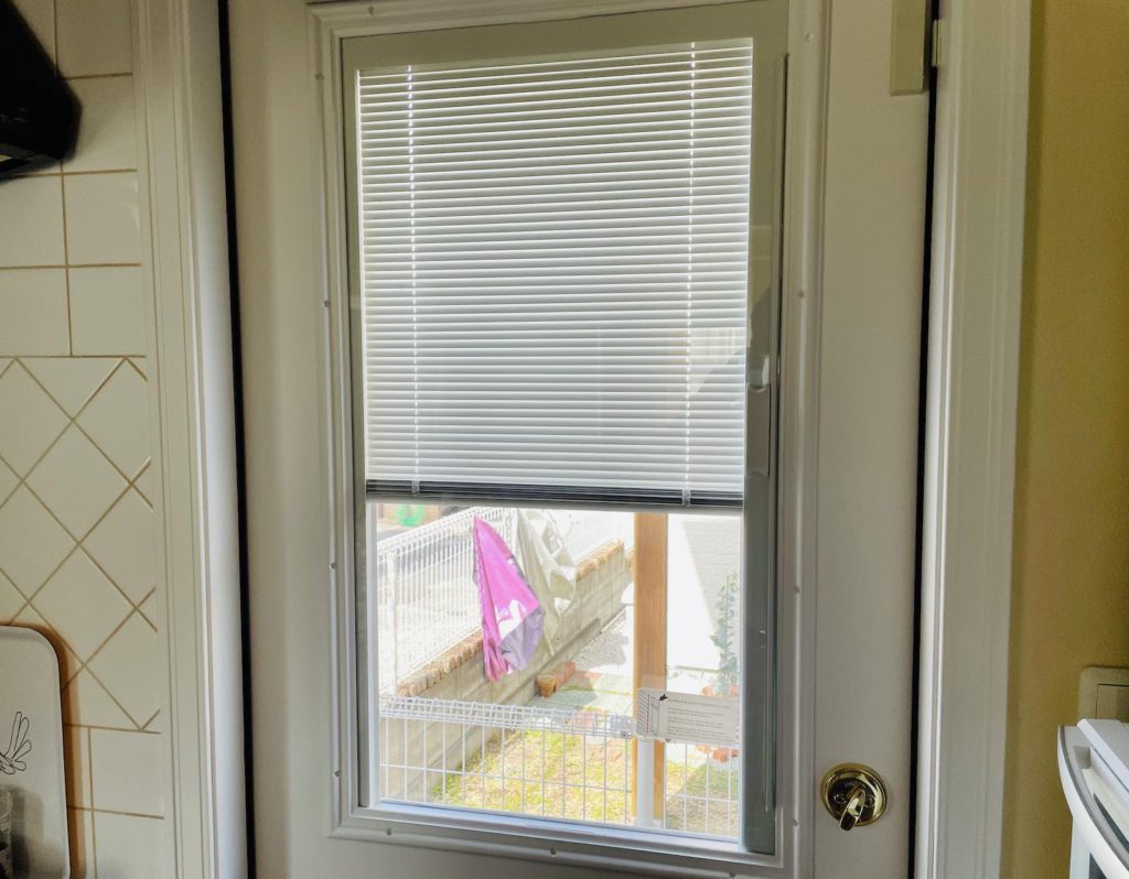 勝手口のドアをTherma tru社のブラインド付きドアに交換しました。
